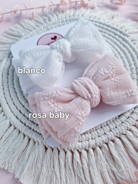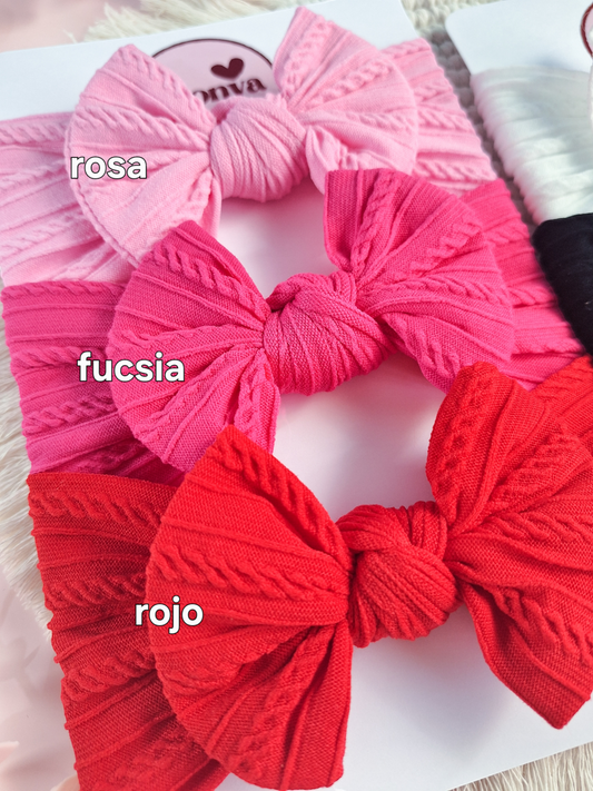 *Todos los moños tienen la opcion de colocarse sobre bandita de nylon para bebes. En los tamaños mini, chico y mediano.