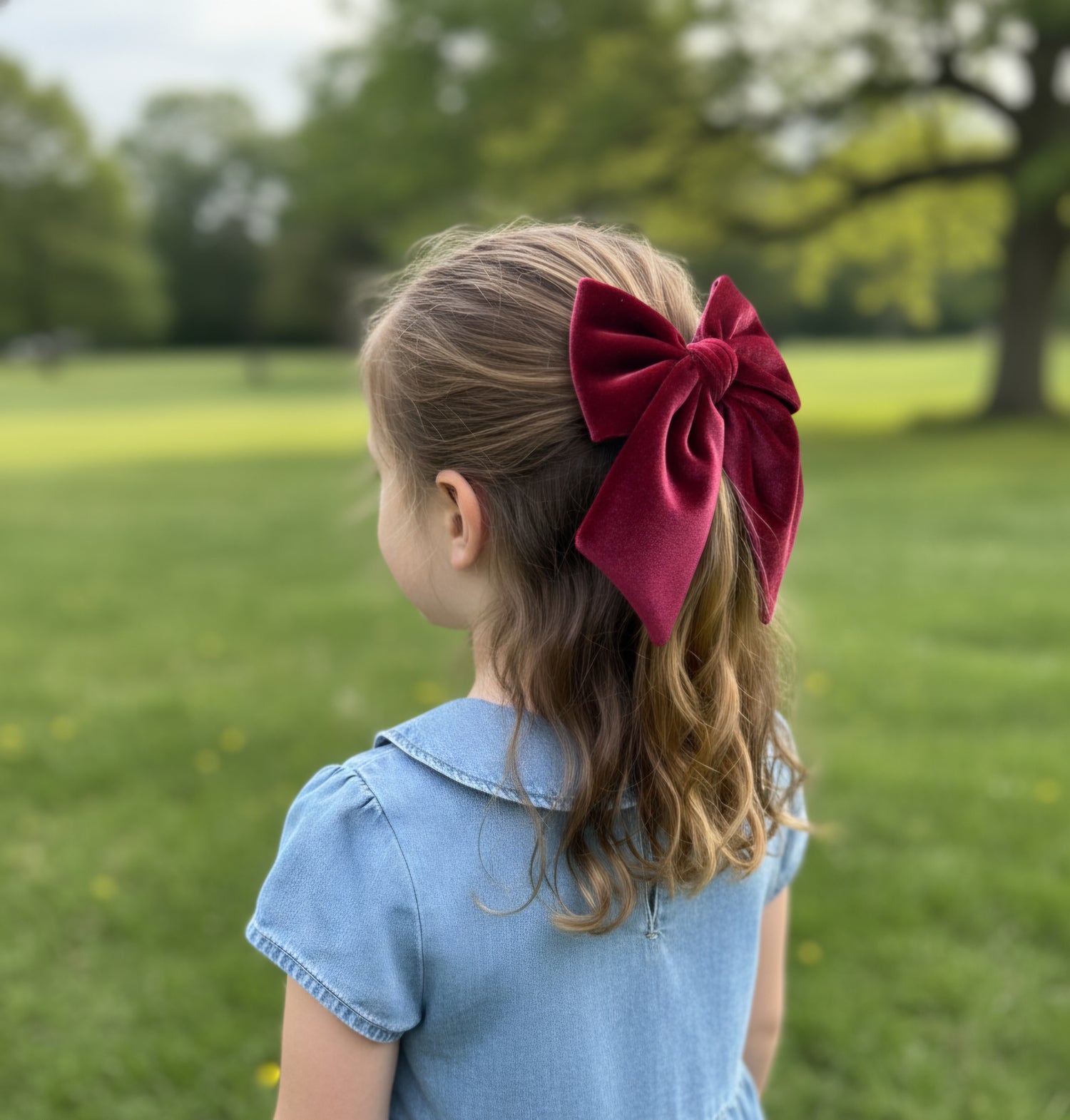 Haz que cada dia sea una ocasion especial. Nuestro Moño de Terciopelo Color Vino es el accesorio perfecto para tu pequeña princesa. Su textura suave y el profundo color borgoña añaden un toque de sofisticacion instantanea a cualquier atuendo, desde el uniforme escolar hasta el vestido de fiesta. ¡Simplemente el toque final que irradia estilo!