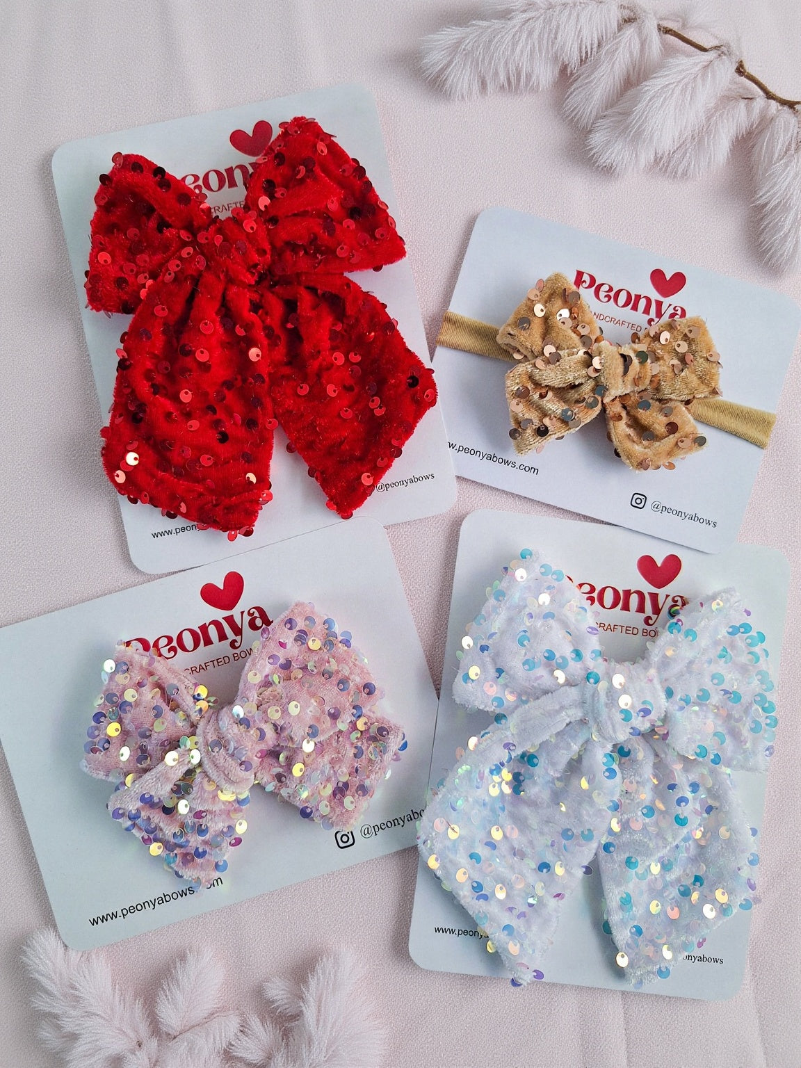 Nuestros Lazos estan confeccionados con las texturas mas suaves y adornados con lentejuelas brillantes que capturan la luz y las miradas.¡Perfectos para cualquier ocasion, desde un dia especial hasta el toque final de tu atuendo diario!