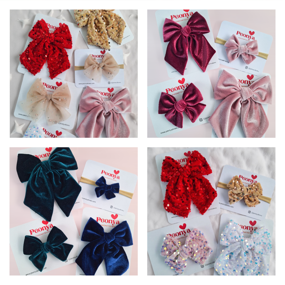 Preparate para añadir un toque de brillo y dulzura a cualquier look con nuestra deslumbrante coleccion de moños artesanales. ¡En Peonya Bows, cada lazo es una obra de arte creada con amor y atencion al detalle!