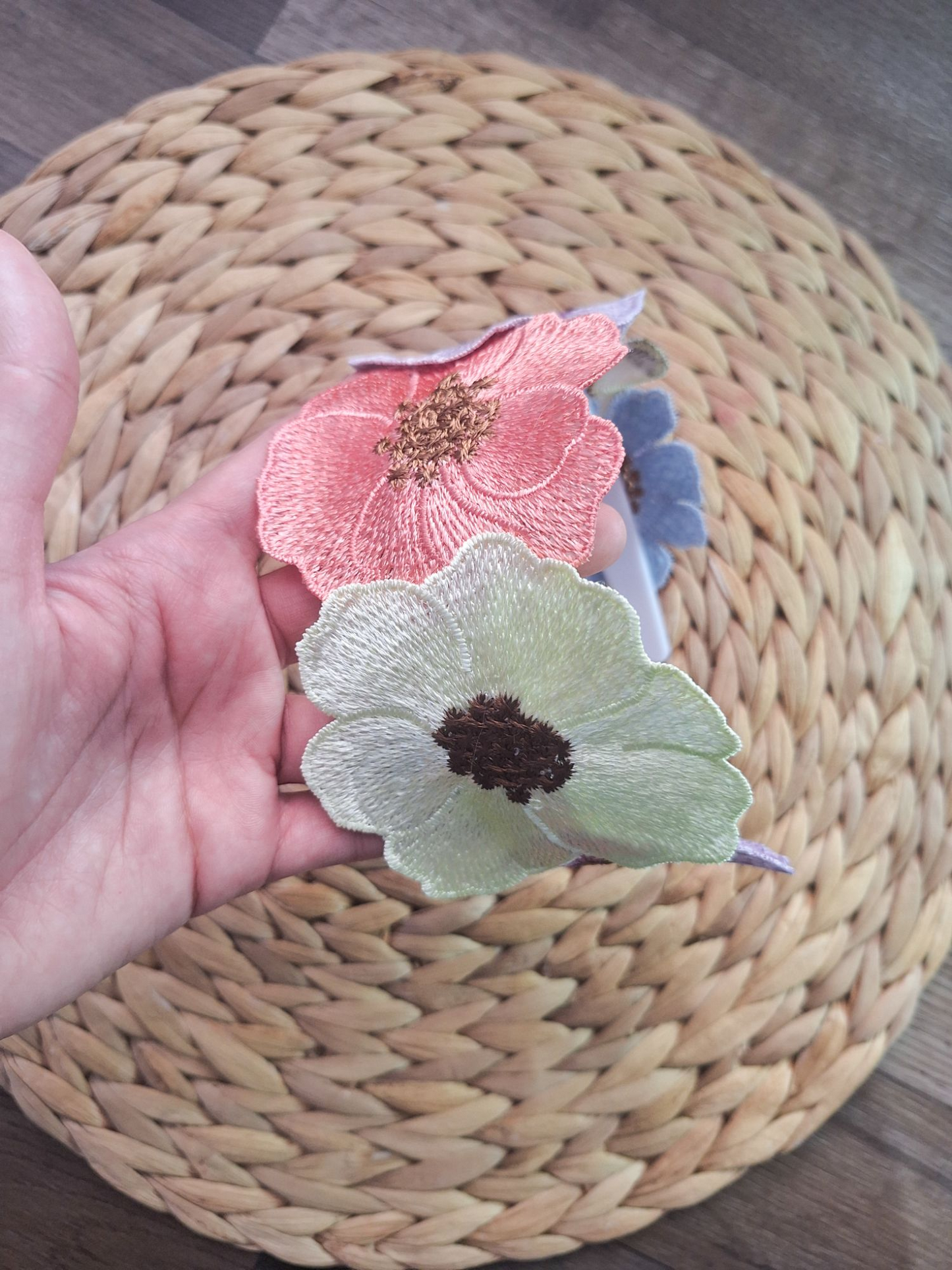 Flores Bordadas grandes y hermosas en tonos pastel! Colocadas sobre una diadema rigida de plastico ancha.