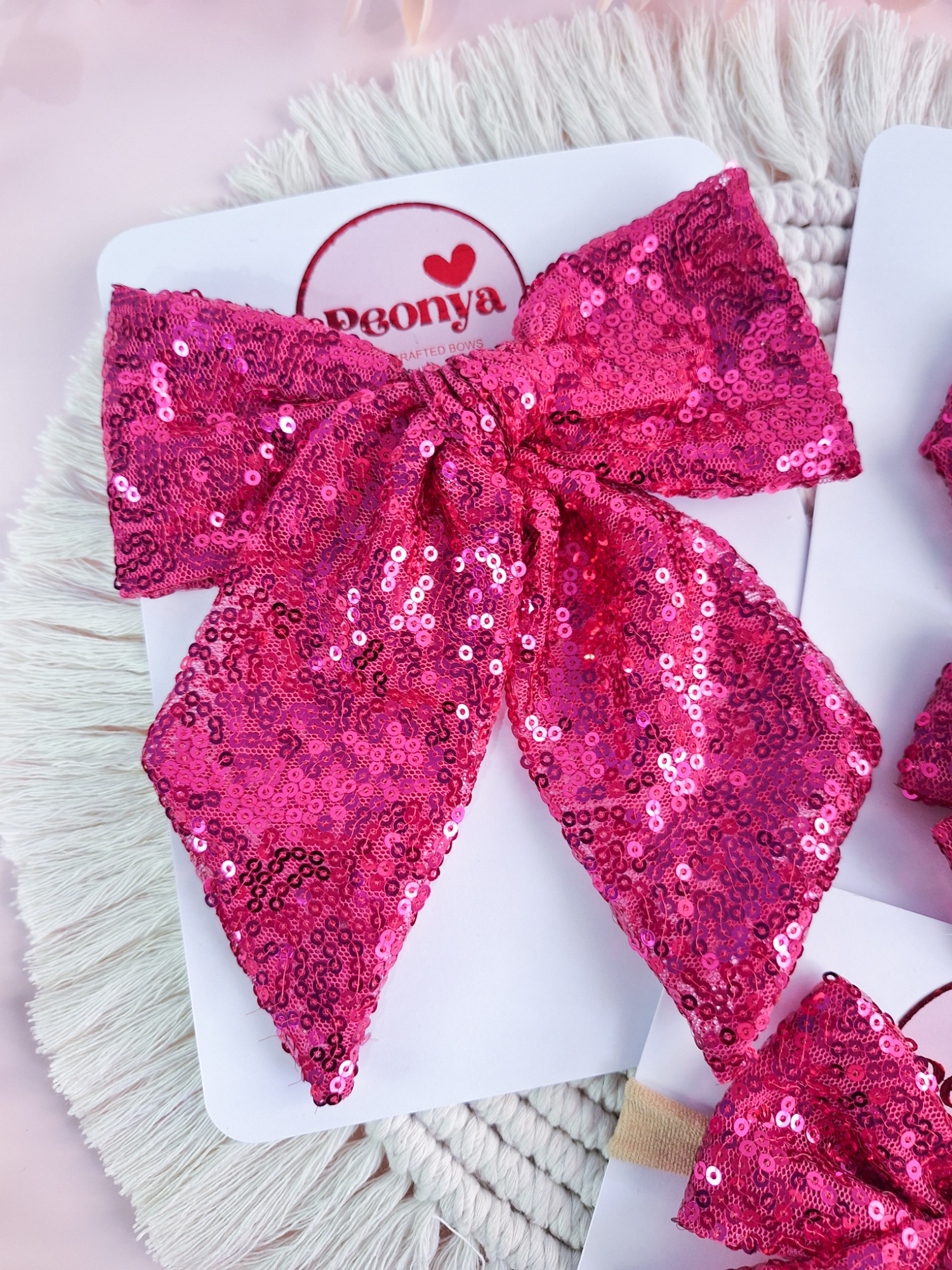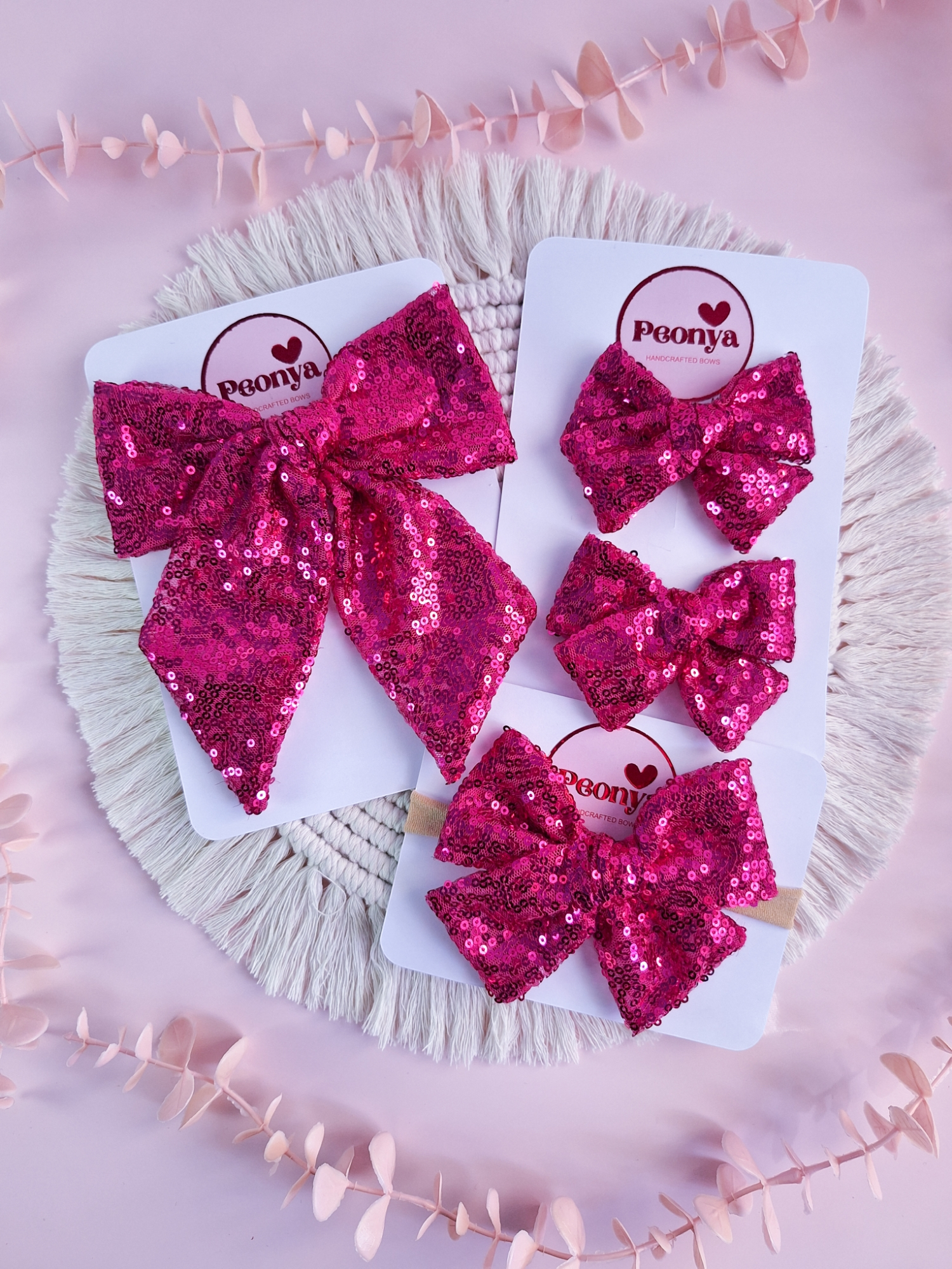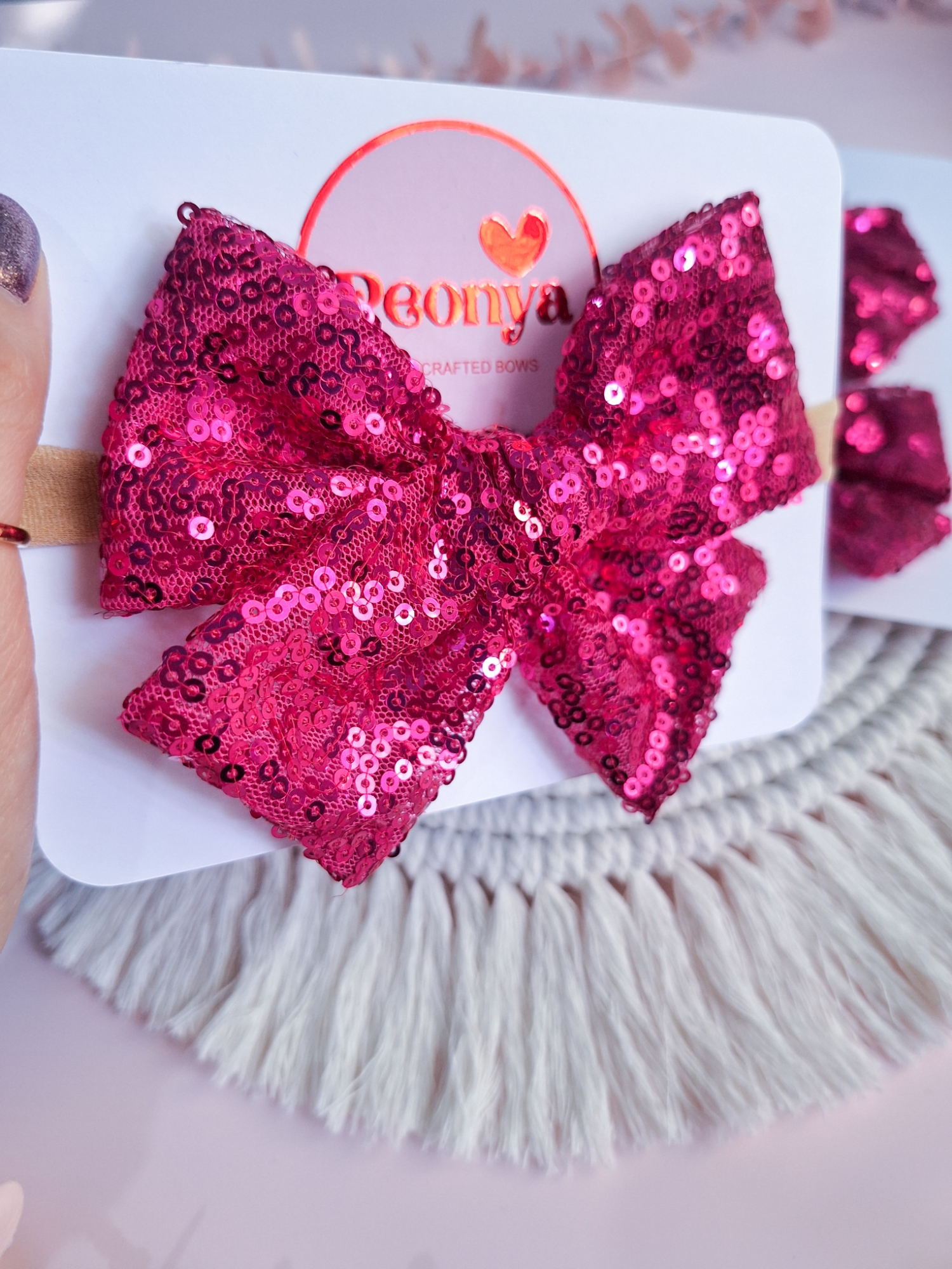 Estos moños son un espectaculo! Realizados con tela de tul con lentejuelas. Elige el tamaño de moño que mejor se adapte a tu pequeña.