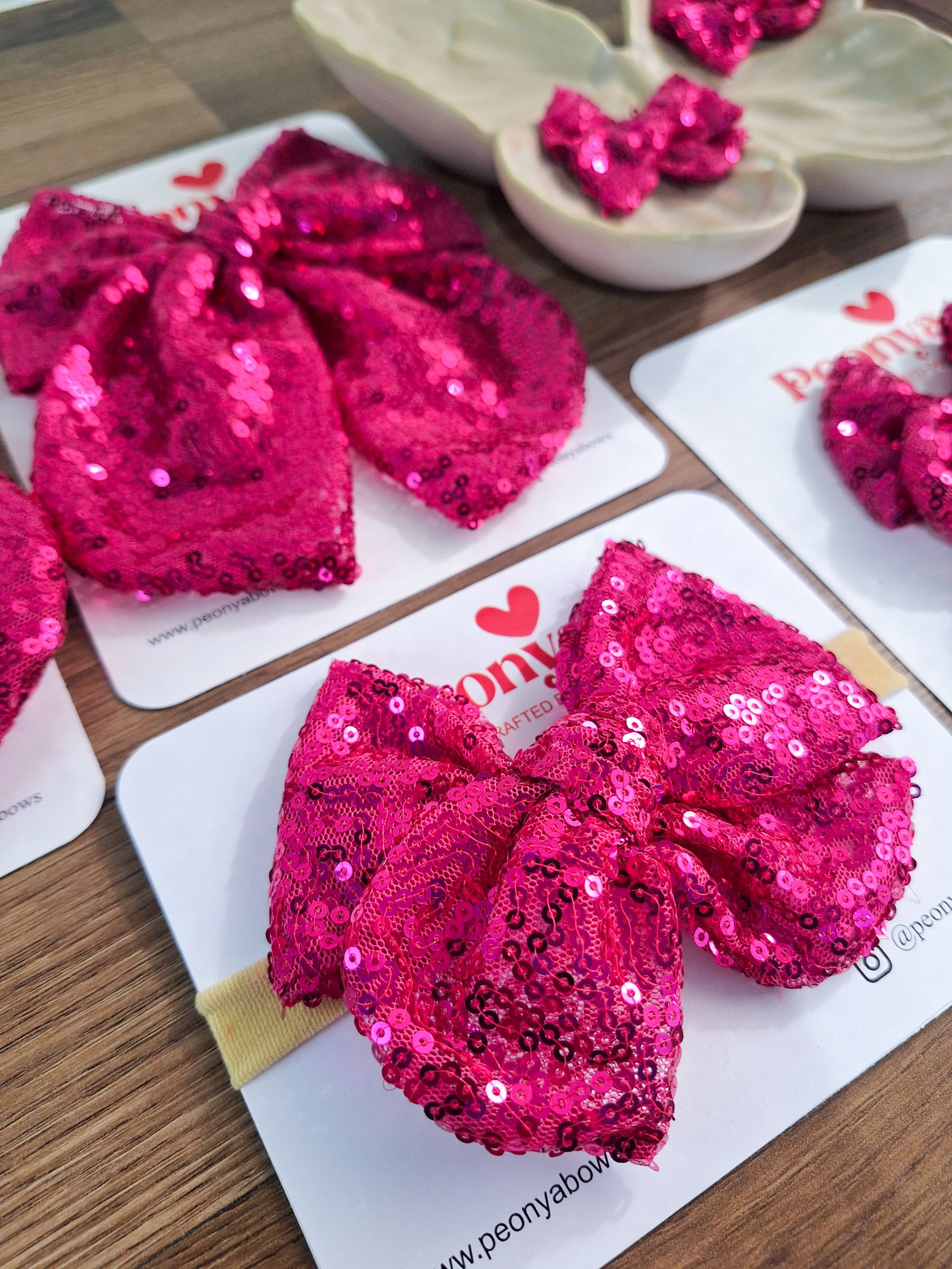 Estos moños son un verdadero espectaculo! Realizados con una hermosa tela de tul con lentejuelas. Elige el tamaño que mejor se adapte a tu pequeña.